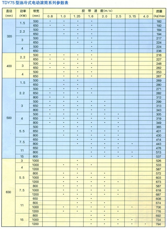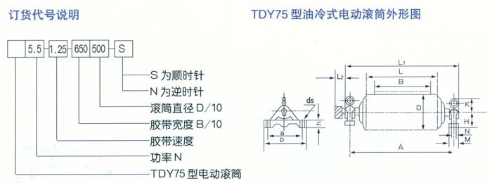TDY75油冷式電動滾筒是供各種固定式帶式輸送機配套使用的內(nèi)驅(qū)動裝置,與外驅(qū)動裝置相比,具有結(jié)構(gòu)緊湊,占用空間面積小,使用維護(hù)方便,操作可靠,密封性好,能適用于粉塵濃度大、潮濕泥濘的工作場所等特點。可滿足各種逆止、包膠等要求。